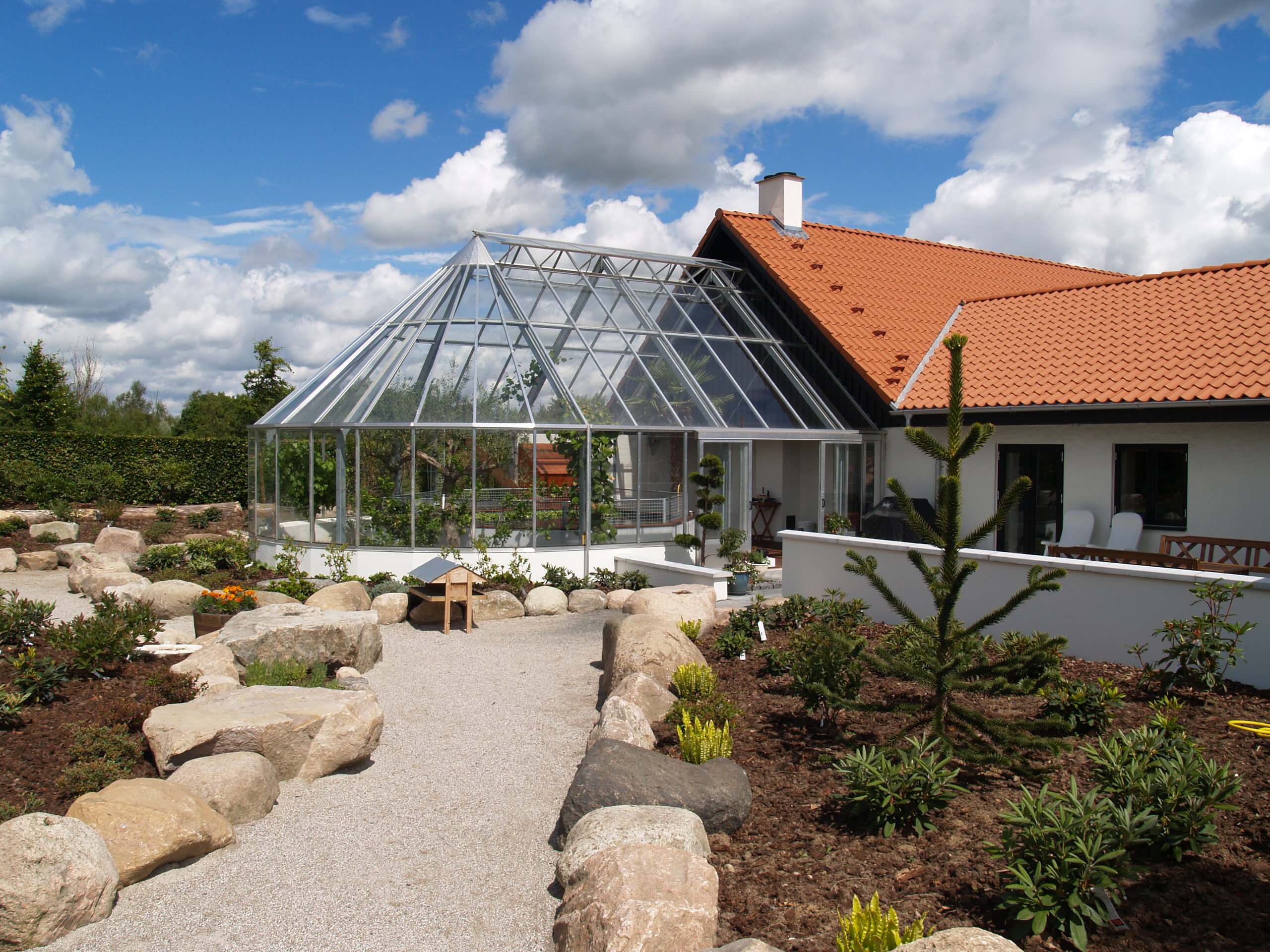 4. I Hinnerup i Midtjylland har man bygget et stort orangeri på huset, og det giver en ekstra indendørs have.