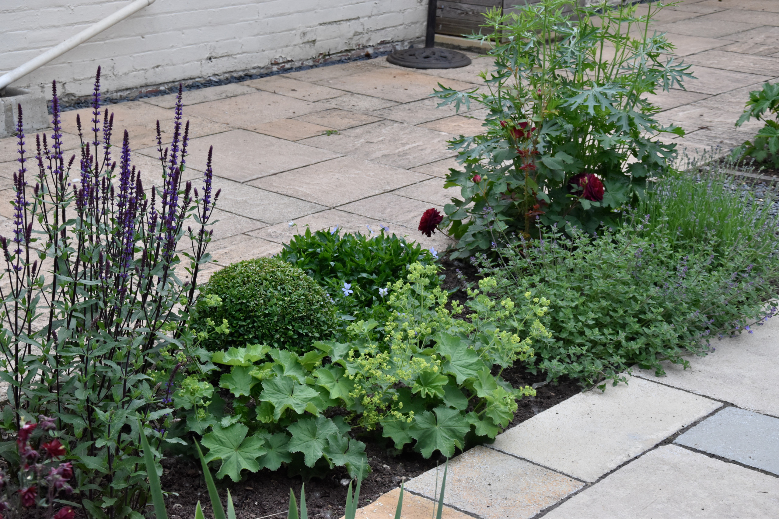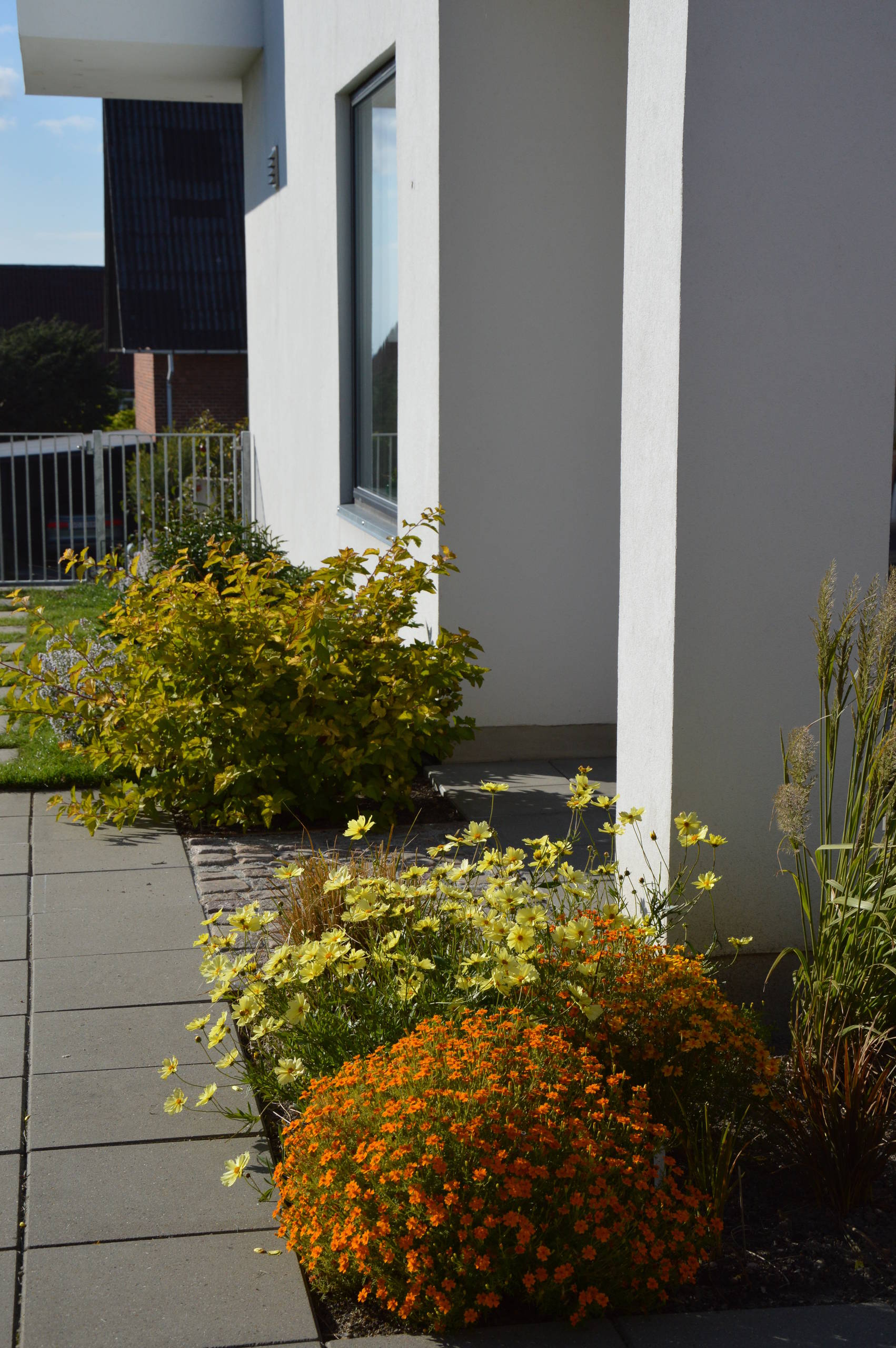 Ved mange nye huse er der typisk anlagt en stor terrasse med masser af fliser på sydsiden. For at få lidt liv i den golde stenørken kan det være fristende at købe krukker eller højbede, men det er krævende at vande og nippe planterne i dem. Hiv i stedet nogle af fliserne op og del terrassen op i flere rum - naturligvis med plads til udendørsmøblerne, sandkassen, og hvad du ellers ønsker dig derude.