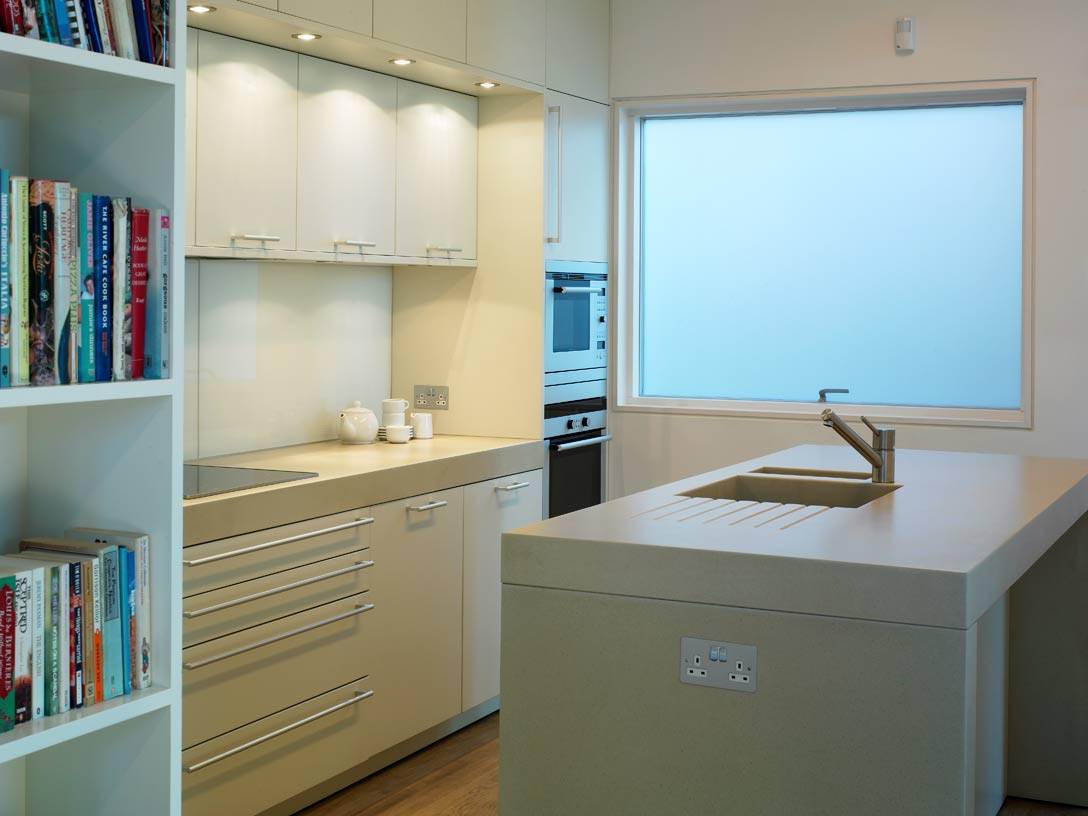 Smarte håndtag, integreret belysning, moderne indbyggede hvidevarer, tidssvarende armaturer og støbte strukturer til afledning af opvaskevand er alle designelementer, der ofte findes i større, dyrere køkkener, men de fungerer også i et mindre køkken.