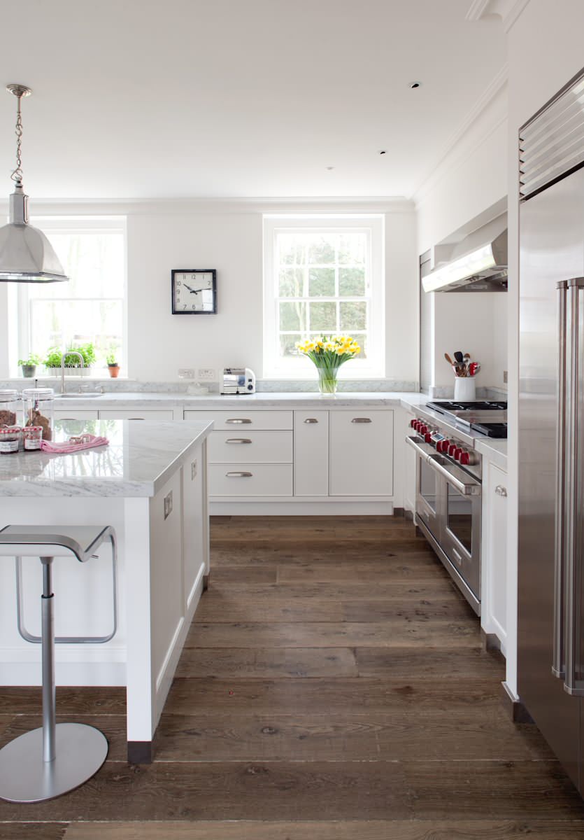 Uanset hvilken gulvoverflade du vælger, anbefaler Andrew Petherick fra Artichoke, at du beslutter dig i starten af køkkenrenoveringen, så sokler og fugelinjer passer godt sammen. “Det er vigtigt at tage højde for, hvor brede brædderne er, eller hvor store fliserne er, og samtidig tænke over, hvordan køkkenmodulerne kommer til at stå på dem – altså, hvor linjerne kommer til at løbe. Hvis gulvlinjerne ikke er parallelle med eller vinkelrette på soklerne, men står skråt på dem, kommer det til at se virkelig sært ud.”