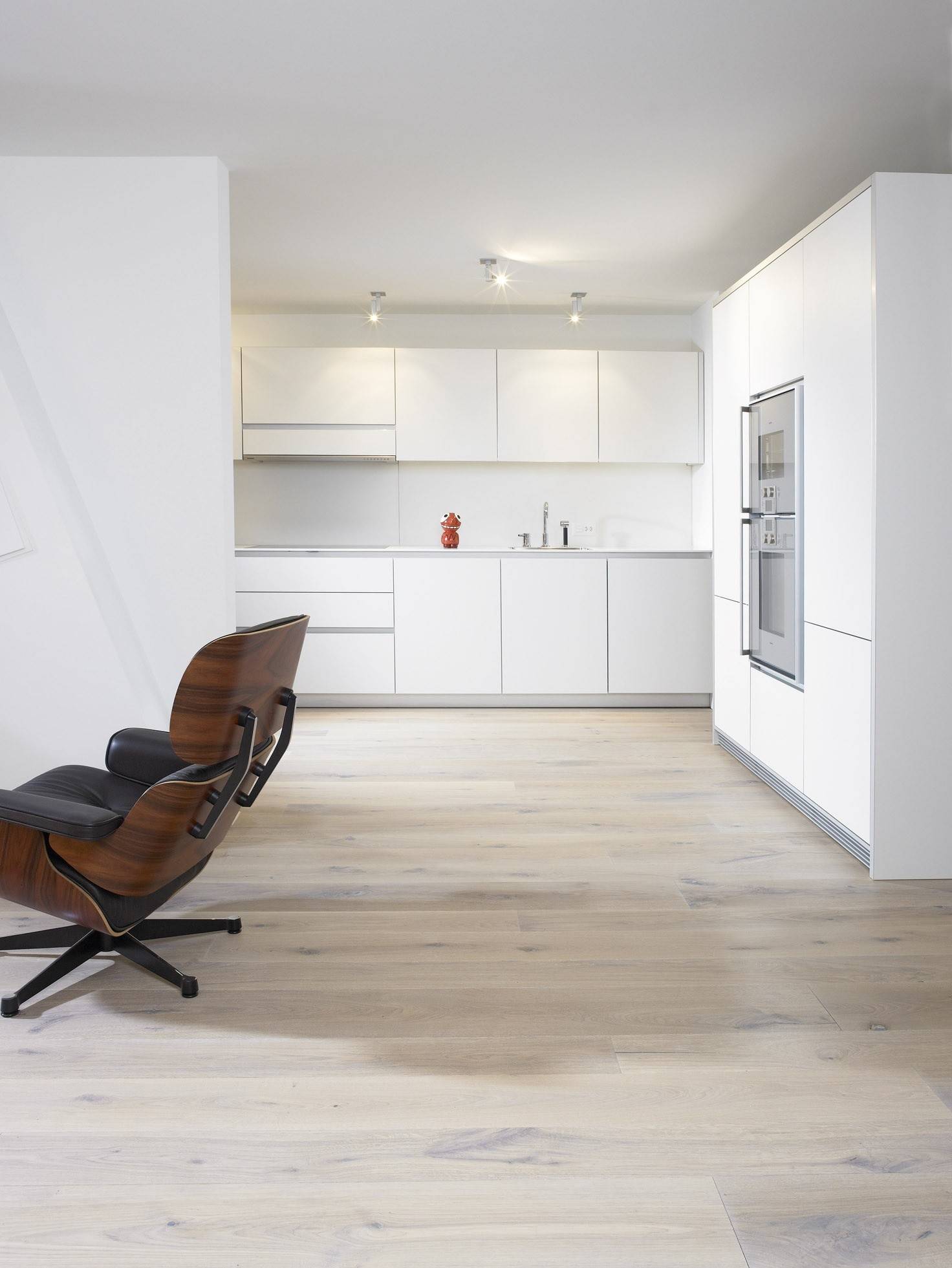 “Vi er også vilde med sildebensmønstret”, siger Gurjeet Hunjan, “Og parket med en kontraststreg. Der er stor efterspørgsel på hvidpigmenteret egeparket, fordi det er moderne og samtidig har karakter.”