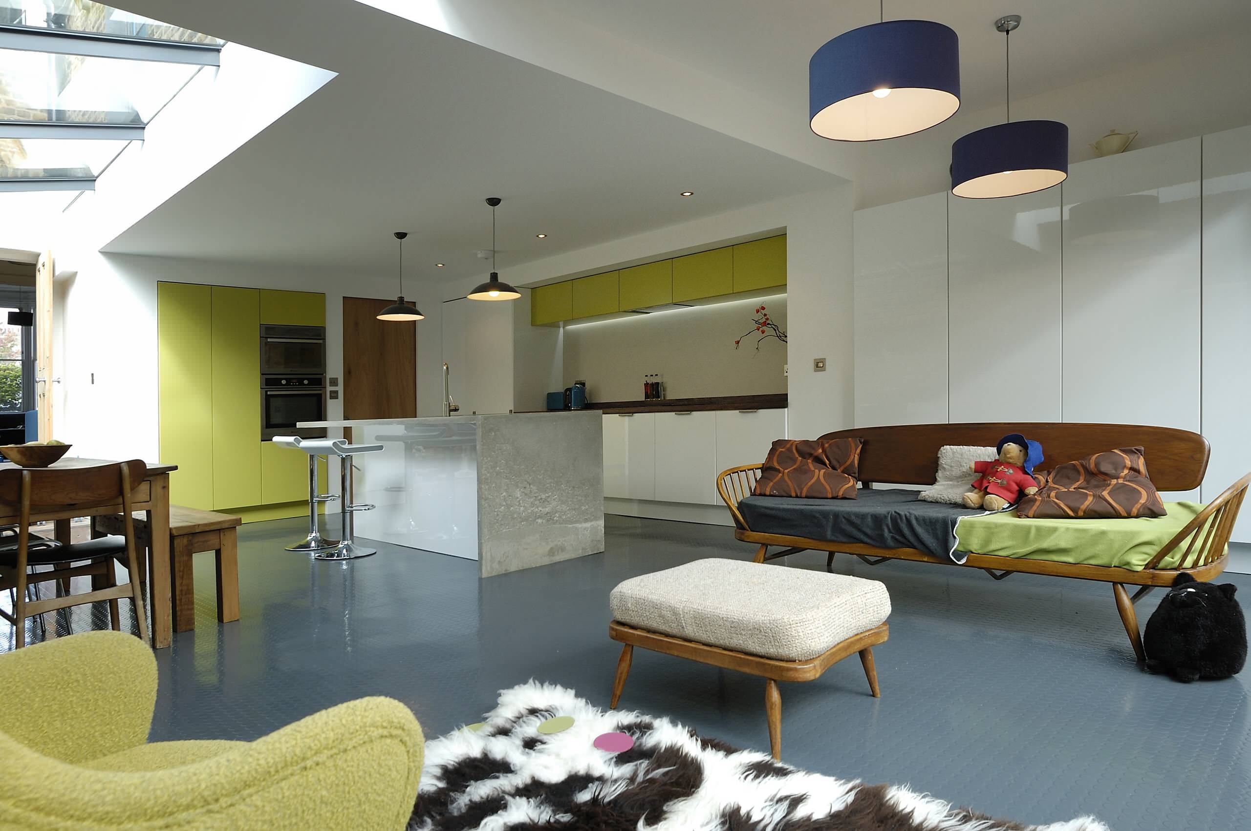 Epoxy bliver stadigt mere populært i køkkener. “Trenden går i retning af hvidt eller mellemgråt”, siger Paul Hutton. Epoxy kan hældes ud over hele køkkengulvet, så man får en overflade uden overgange.