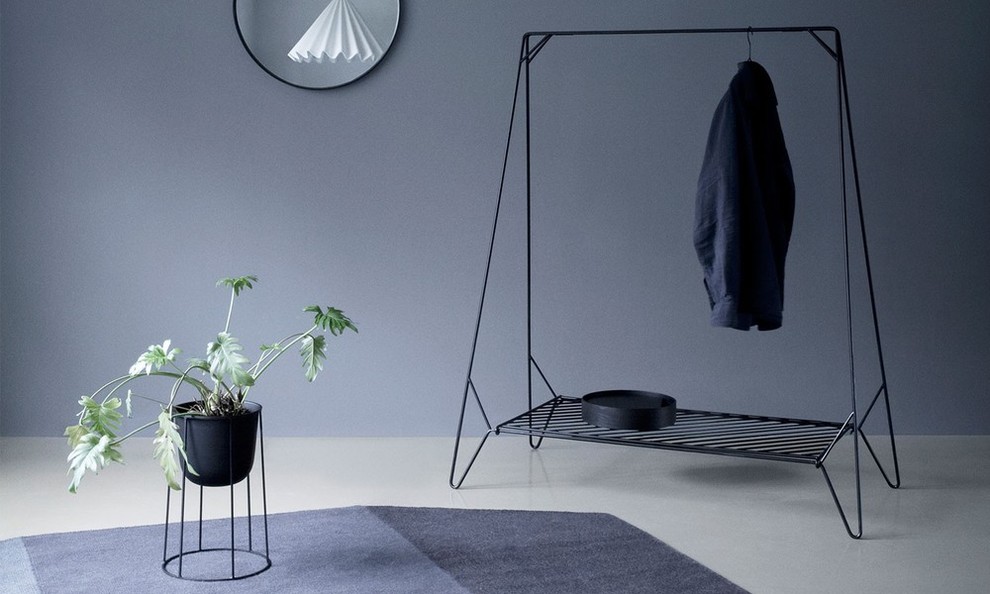 De fleste mænd er tosset med stål, hvorfor dette tøjstativ er det ideelle valg for det mandlige segment. De 4 spidse fødder kan næsten sammenlignes med de moderne hairpin legs, der særligt forbindes med mid-century møbler, får blot dette stativ til at fremstå endnu skarpere. Derudover komplimenterer grønne planter og habitjakker virkelig stativets look, som vist på billedet.