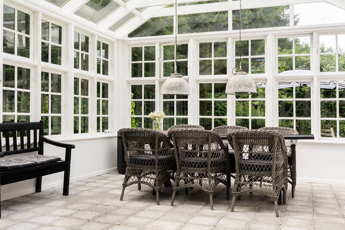 Københavnerlamperne er med hjælp fra vejr og vind blevet naturligt patineret i årenes løb, og derfor fremstår nogle mere slidte end andre, ligesom farverne kan variere en del. For eksempel er de to lamper over bordet i udestuen herover noget mere medtaget og lysere end de fleste andre.