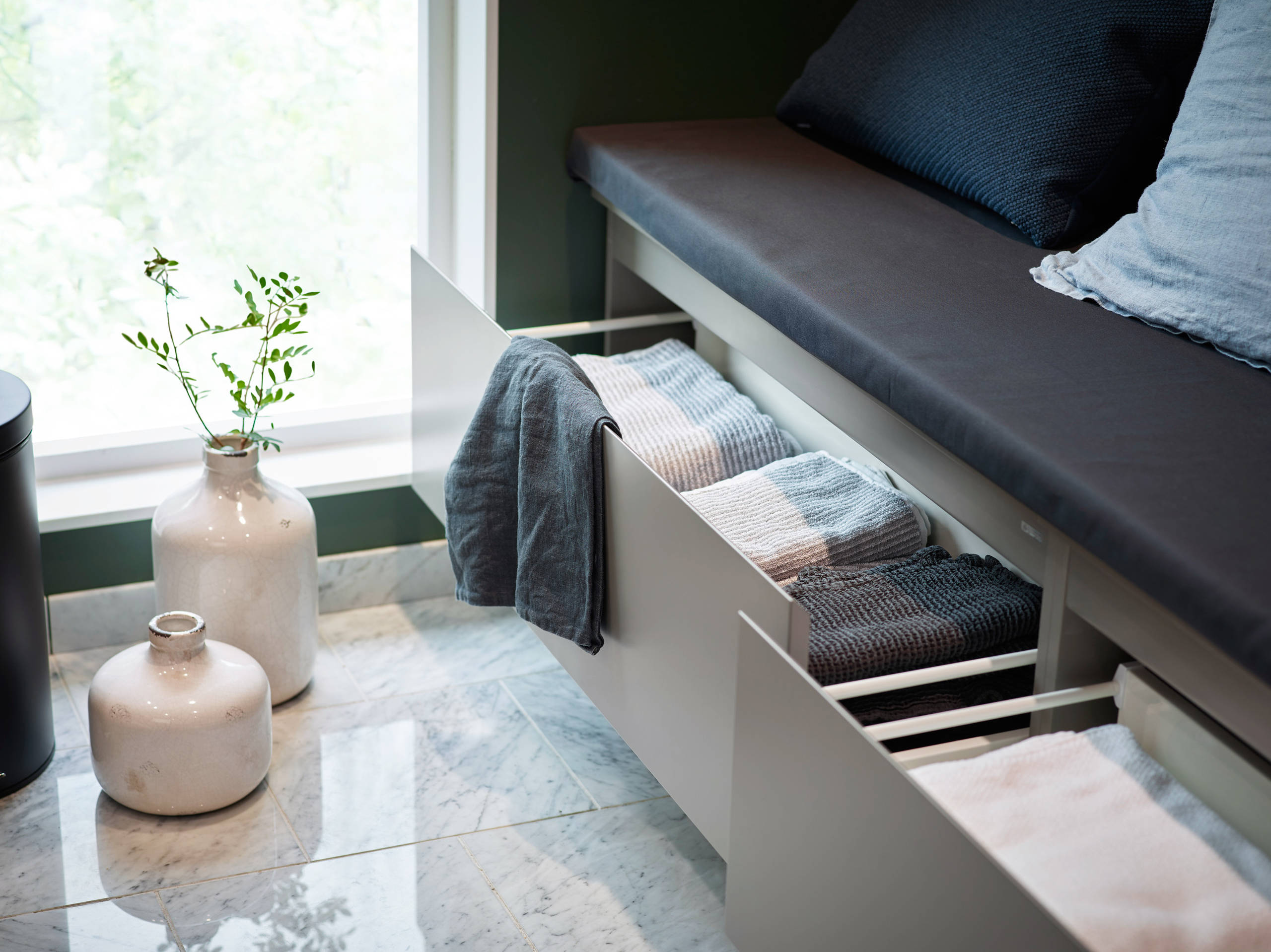 Tiltrækningen gælder heldigvis også den anden vej: Orden tiltrækker orden. Her skal du blot huske en helt central ordensregel: “For at kunne rydde op og holde orden, skal der være en plads til hver ting. Og her skal du være realistisk: Hylder, skuffer, opbevaringskasser og lignende skal have en størrelse, der passer til omfanget af de ting, du vil opbevare. Ellers bryder systemet hurtigt sammen,” siger Sanne Severinsen.