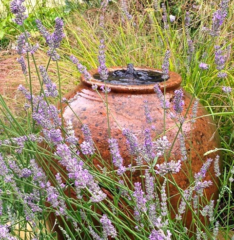Et stykke vandkunst er et must i en middelhavshave og køler luften i den varme sommer. Vandet bringer i øvrigt en helt ny dimension til haven – den blide lyd af løbende eller boblende vand, og overfladens lysspil er virkelig en stemningsspredende detalje.