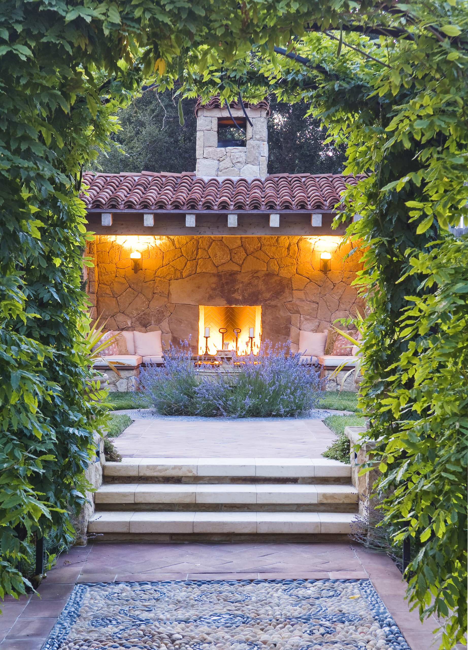 Vi drømmer nok alle om vores helt eget udehus med siddepladser og knitrende ild omgivet af smukke, duftende planter – og endeløse, varme somre selvfølgelig! Det kan godt være, at det der med høje temperaturer sommeren igennem ikke holder vand, men vi kan alligevel godt indrette en lille middelhavsoase med et par essentielle ingredienser – også selvom det ikke bliver den helt store klippehule. Planteskoler tilbyder i dag mange typer ildsteder, og et sådant vil se vidunderligt ud i en gårdgave omgivet af rustikke metalstole. Smid store udendørs puder på terrassegulvet for en tilbagelænet stemning, og husk et par tæpper til de kolde sommeraftener.