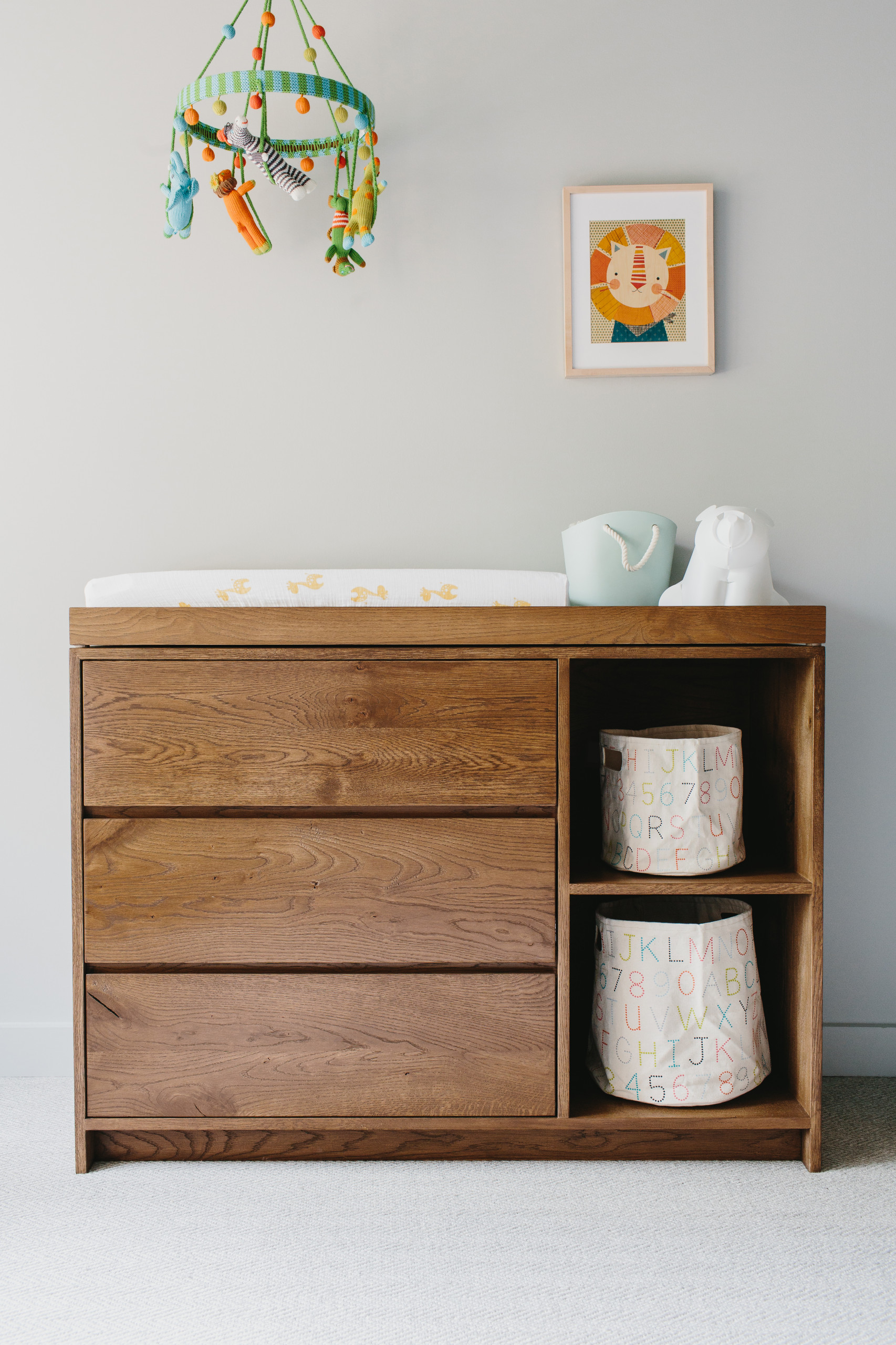 Det gode ved at vælge en kommode er, at den har en masse skuffer, som I kan fylde med bleer, klude og tøj. Samtidig har den et mere afdæmpet udtryk, der gør, at den ikke falder helt så meget i øjnene, som mange egentlige pusleborde godt kan gøre.