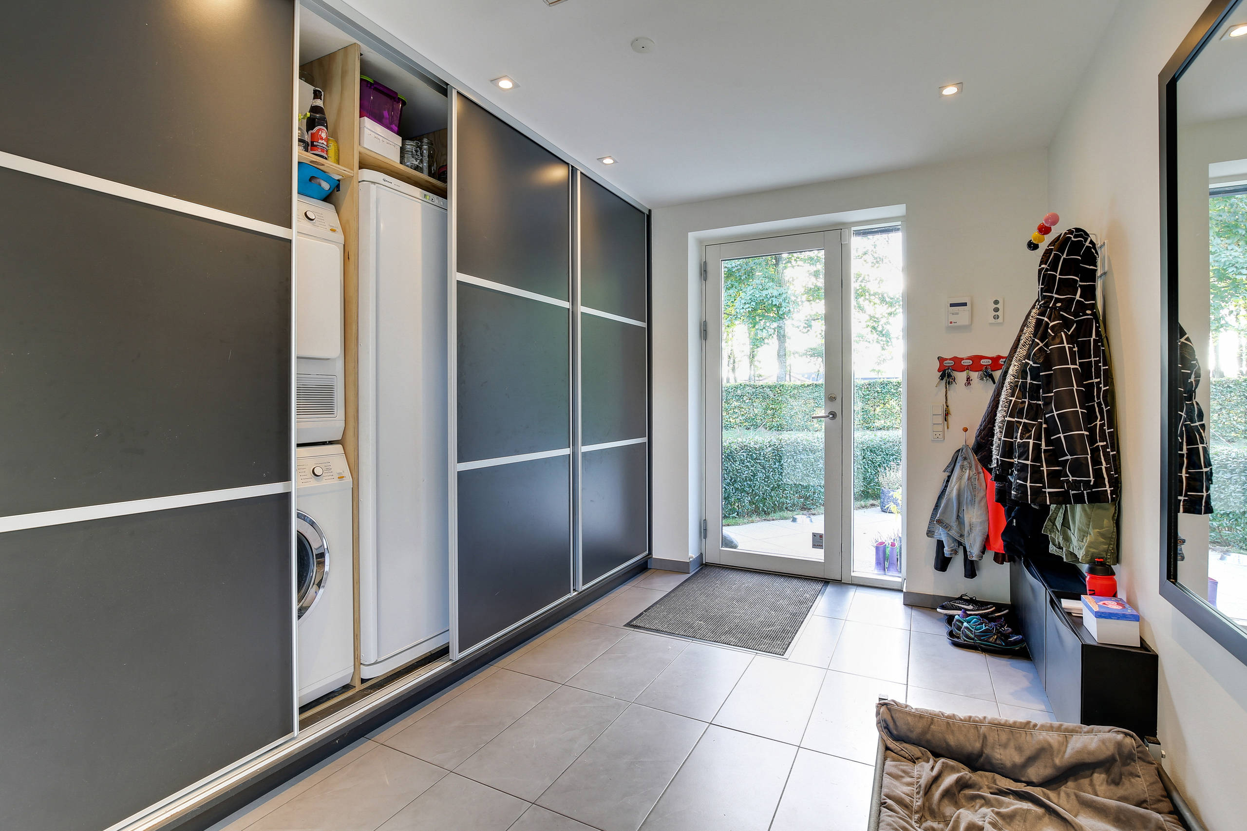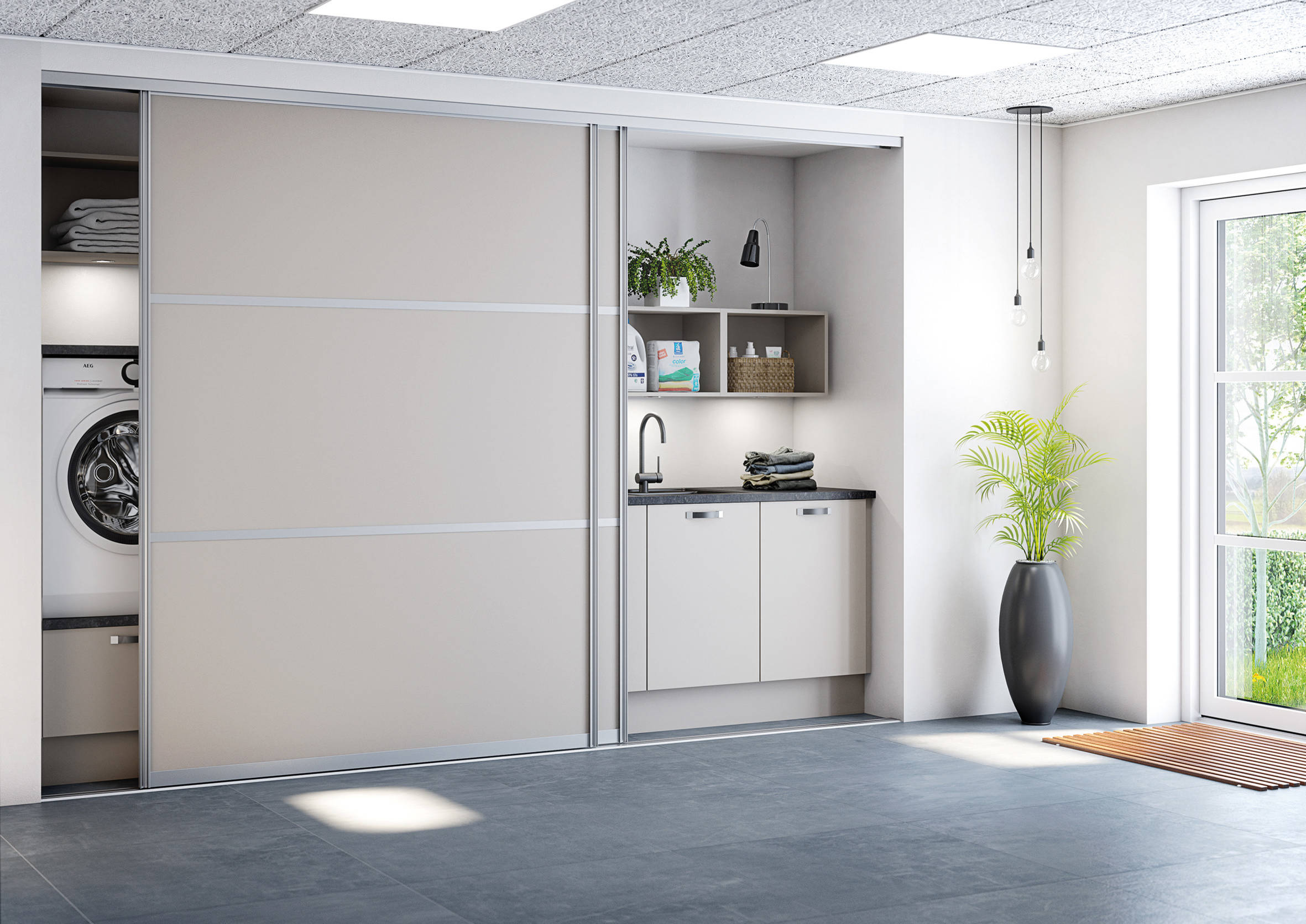 Hvis pladsen er til det, findes der næppe mere pladsbesparende låger end skydelåger. Særligt i et bryggers, der hurtigt kan blive fyldt og rodet til med overtøj og alle familien sko, er det rart at kunne gemme vaskemaskine og tørretumbler – og alt det andet, der kan proppes ind bag de store skydelåger.