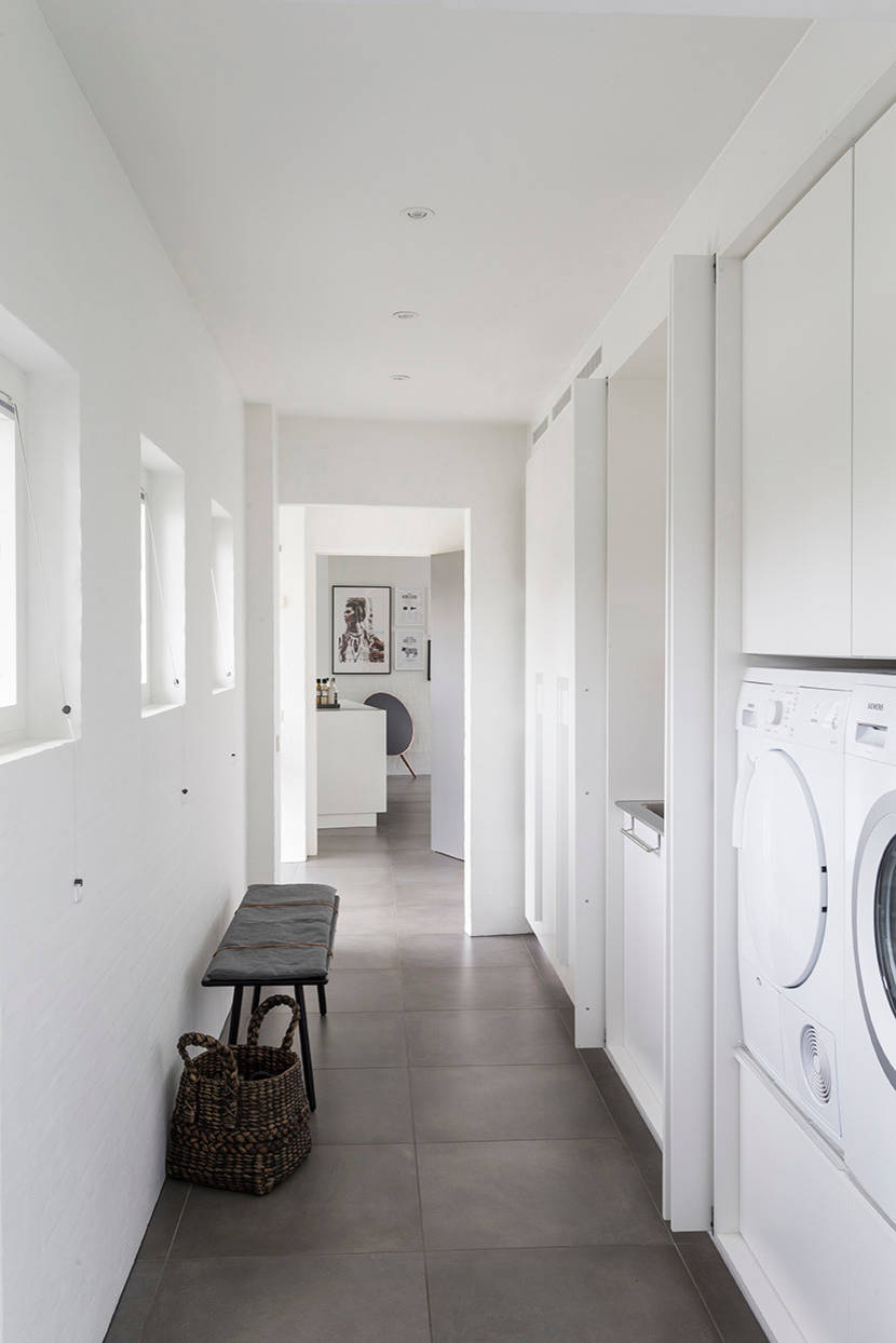 En foldelåge er både praktisk og pladsbesparende som i det hvide, stilrene bryggers, der er installeret i et hjem i Sydney, Australien.